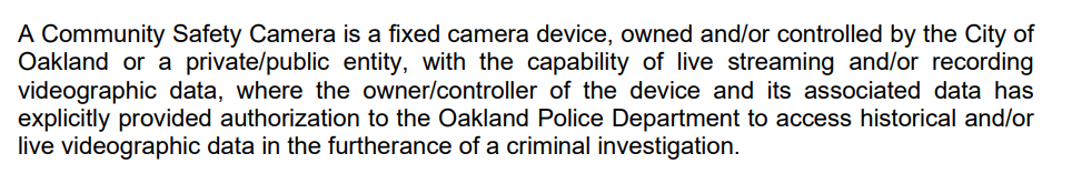 But the report does note that the expansion will give the OPD the ability to view in real time any private camera whose owner has opted in to the program; city cameras appear to also be capable of 24/7 livestream. And though OPD’s ask starts with 40 units, per the report, it also has no upper limit. OPD calls its proposed network of privately owned cams and video tilt and pan cameras “Community Safety cameras [CS]”.