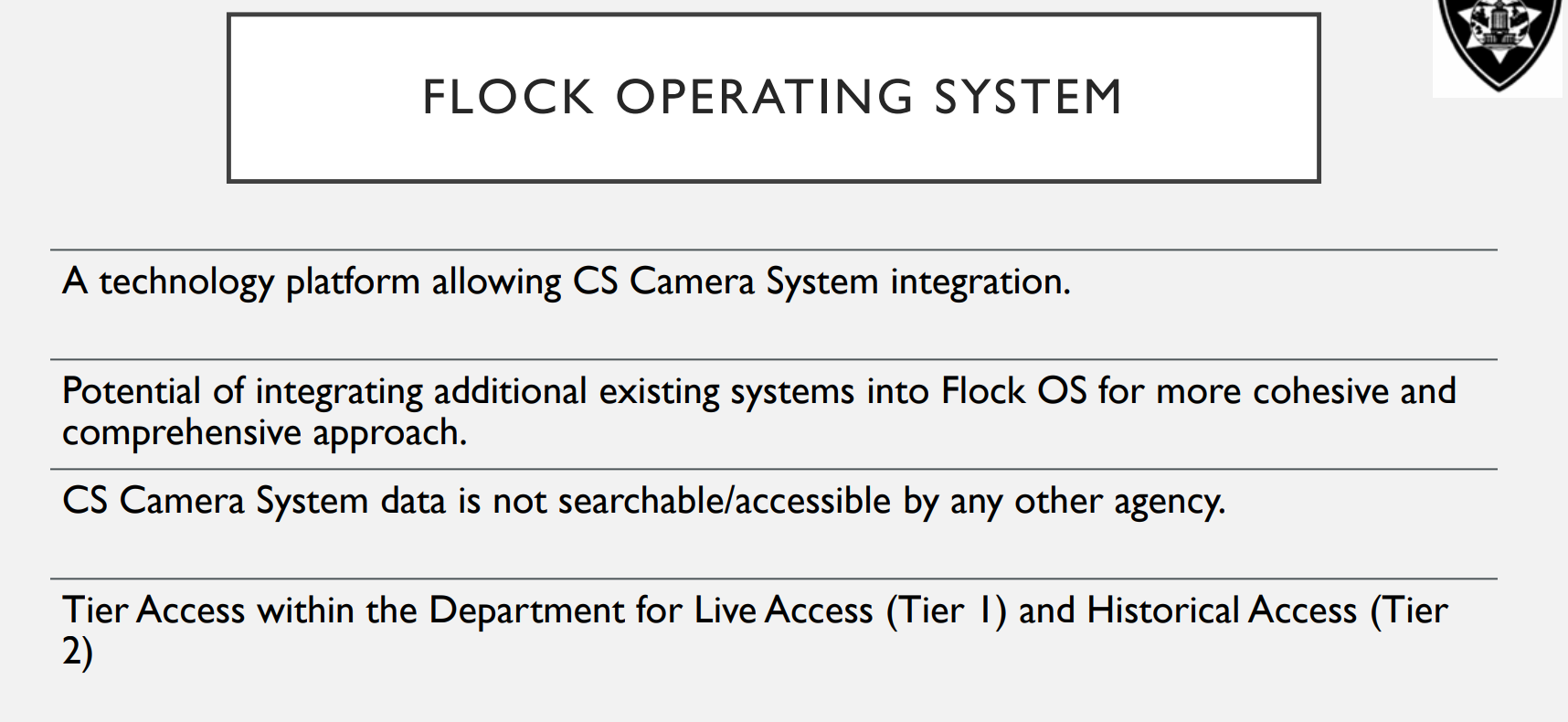 Both versions contain additional details not included in OPD’s legislative report—including contingencies meant to assure Council members. In the current draft, Flock can be cancelled in the event of a federal takeover of Oakland, and the company commits to not share or use Oakland’s data. But neither the report nor the presentation answer many of the questions already put to the OPD during the PAC meeting, nor any of the national scandals involving Flock that occurred in the meantime and prompted the body's negative findings. Nor the reality that information seen on video can be shared verbally or in other ways with no official log.