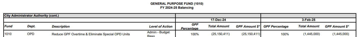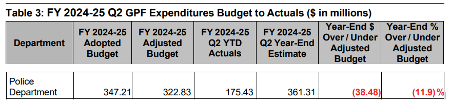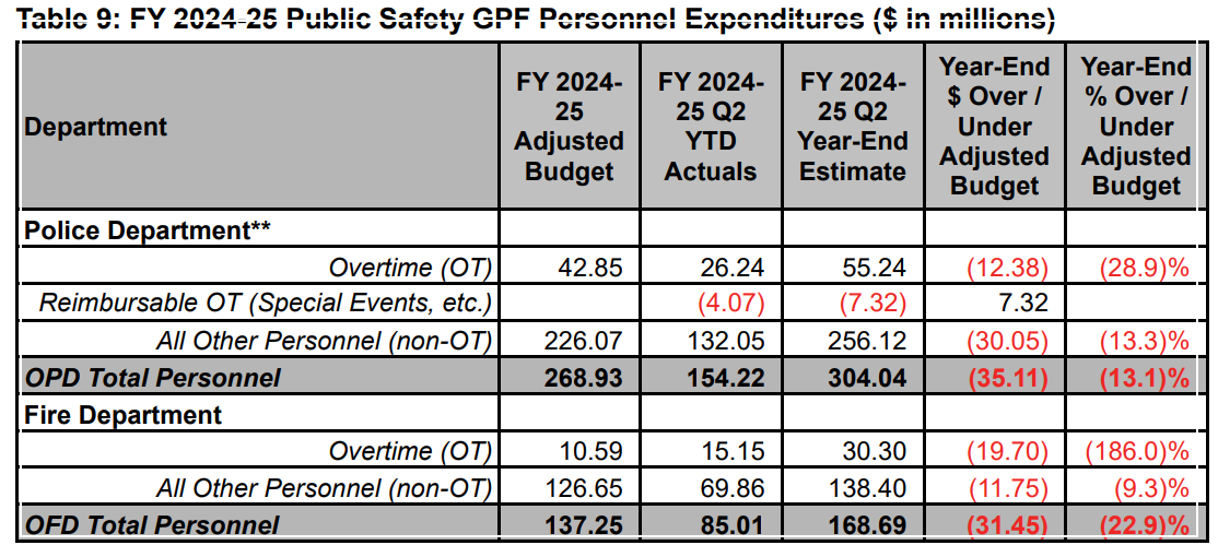 The Q2's banner headline is that OPD will overspend its total contingency/December cuts budget by $38 MM by fiscal year’s end, most of that driven by overspending on overtime. That’s actually about $14 MM over its original Coliseum-reliant budget from July.