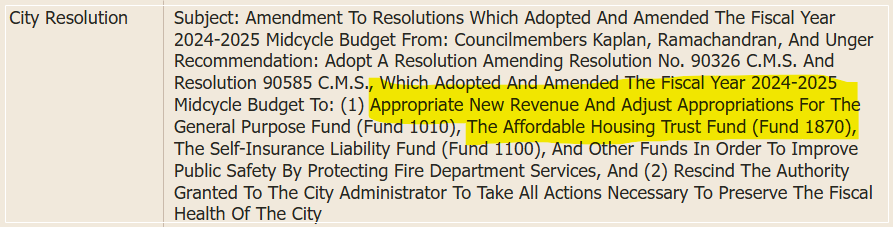 And there is yet another front to the issues. The legislative digest for the firehouse refunding states that some of the monies will come from the Affordable Housing Trust Fund, a fund that is at the core of yet another budget struggle playing out in parallel. On Thursday, Oakland Housing Secure, a $ 1MM annual grant to CBOs for eviction defense and tenant counseling was bumped a third time from potential scheduling even as the firehouse refunding was announced. The withdrawal of the legislation, usually funded with monies from the Affordable Housing Trust Fund, alarmed tenant advocates.