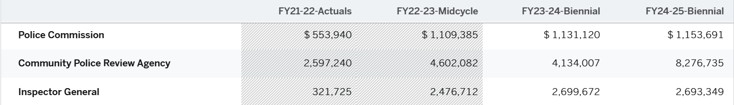 But the additional investigators were cut in the mid-cycle budget adjustment of July, leaving the budget at $5.1 MM and little likelihood of beginning that transition this fiscal year. As Coliseum funds did not become available, the Council's contingency budget was implemented, and that meant a further reduction—at a recent meeting, the CPRA’s Director said that was functionally about $4 MM. Now, the CAO appears to be cutting even more from the budgets of the bodies in what appears to be a new round of city-wide cuts that include layoffs and cuts to contracts.
