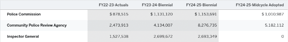 In a presentation, the Police Commission laid out a stark half-million dollar budget, in which its already diverted some of its funding to cushion the impact of separate cuts on the Office of the Inspector General. The CPRA, where the bulk of daily oversight work of the Commission is carried out, for its part, stood at the precipice of a historical transition of oversight duties from the OPD’s Internal Affairs Department with optimistic budgeting of additional CPRA investigators in the initial two year budget.
