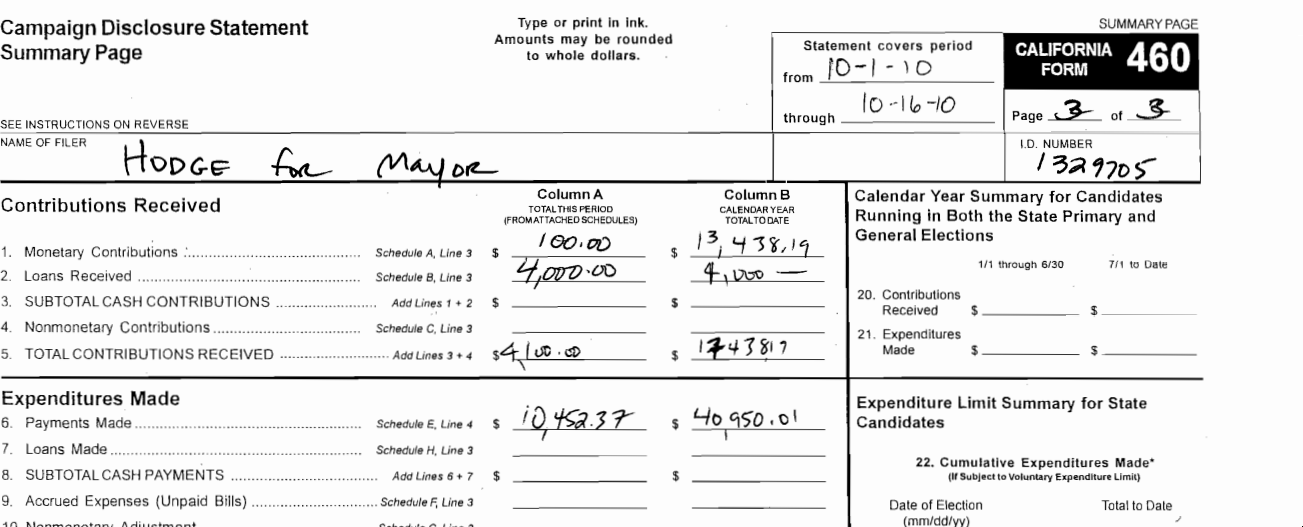 —Hodge's Third Electoral Run in Oakland, Previous Mayoral Run Marred by Financing Irregularities and Fines