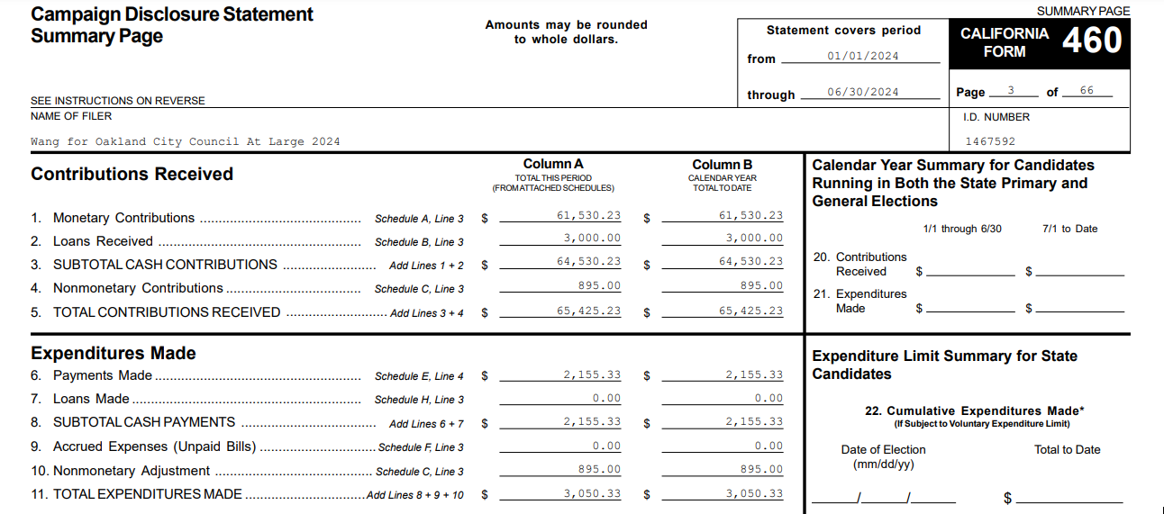 Thao’s self-run recall defense fund had only been active for a couple of weeks before the FBI raid of her residence, and then only a couple of weeks more before the June 30 deadline. Regardless, so far the defense committee has raised little money, though funding and spending often ramp up in the two months before the election. Large donations of $1K or more require an immediate 497 report, but none have been posted as of the date of this report.
