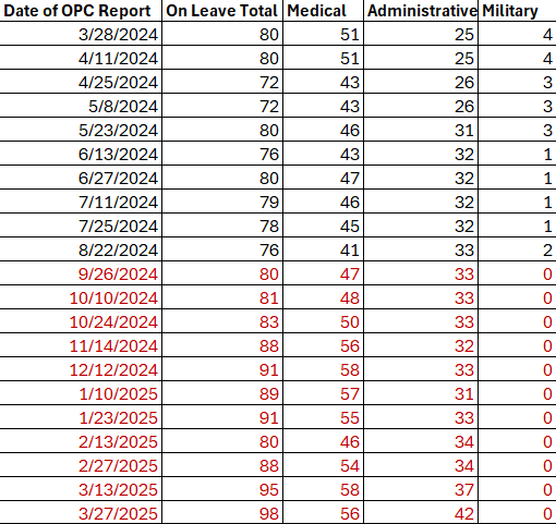 Oakland Police Deputy Chief Lisa Ausmus on Thursday presented Oakland Police Commissioners [OPC] alarming data that shows the highest number of “on leave” officers since the department began presenting the information publicly in March 2024. The report also notes an attrition rate for OPD officers of 5 per month, one of the highest since a sudden wave of resignations, terminations and retirements roiled the department in 2021 and 2022. The news comes as OPD faces a long, dry staffing period with no academies scheduled and an uncommonly low staffing level at 680.