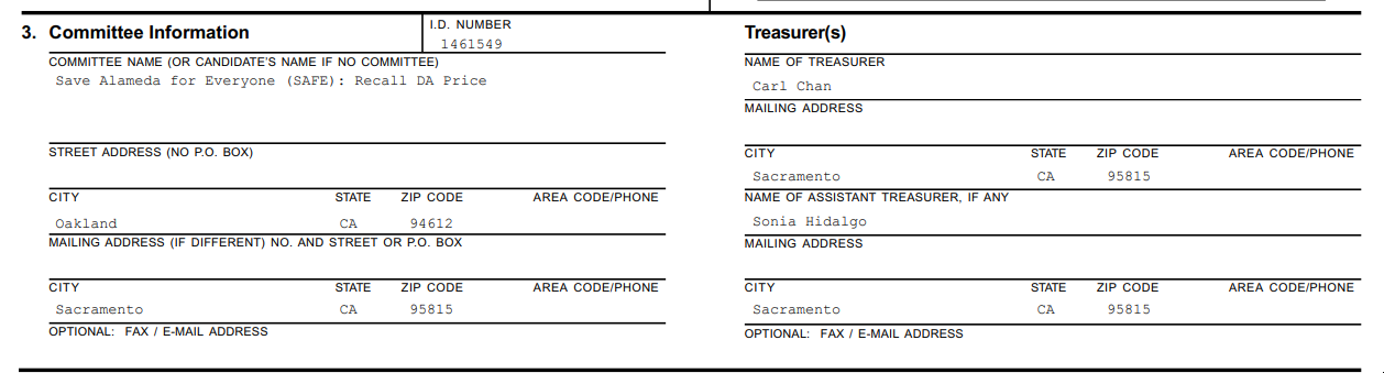 The new and bewildering information comes from an amended “460” report that SAFE—the acronym for the Recall campaign run by Grisham and Carl Chan—filed this week. A 460 report is a required campaign finance report which details money raised, spent and owed that is required to be submitted regularly during election periods and semi-annually. Those reports are also subject to amendment when mistakes or oversights are caught either by the campaign principals or the Fair Political Practices Commission [FFPC]. The report is published to the public again with amendments briefly described, but without full explanations or narratives.