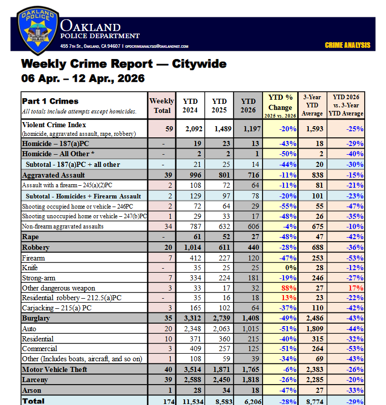Crime has continued to decline, however, despite OPD warnings that the new pan/tilts and resident streaming services were vital to keeping crime low–the new contract period matches almost perfectly to an entire OPD calendrical quarter of crime stats that show crime continuing to decrease as it has since mid-2024.