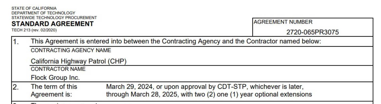 During the mid-December meeting that approved the Flock contract, the OPD’s technology coordinator Carlo Beckman repeatedly told Council that CHP’s contract with Flock was for only one year, and was already terminated and that OPD would soon lose Flock services if a contract was not executed between the City and Flock. But the CHP’s contract is for a potential 3 years—one year, with 2 one year potential extensions and could be proceeding on a month to month or year-option extension. Oakland’s MOU with CHP reflects the longer potential period of the CHP’s Flock contract, three years, ending in 2027. The City Administrator’s office told this publication that Flock is still providing services, but has not responded to questions about how and under what contract that’s proceeded.