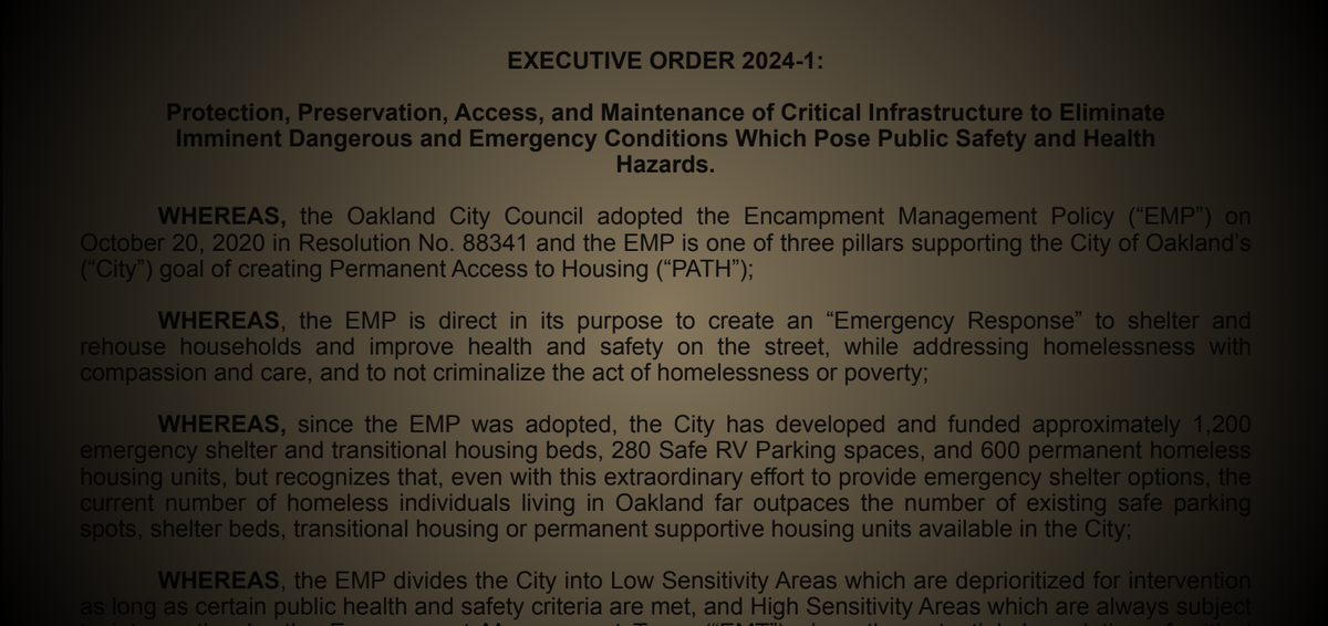 Mayor Sheng Thao announced an executive order this week on the heels of a large scale eviction of a nearly decade old encampment at the border of West Oakland. The order promises to “clarify” the City’s Encampment Management Policy [EMP], the City’s ostensible camp closure guidelines which determine “high sensitivity” and other encampment areas subject to city closure and cleaning. Since late 2020 when the guidelines were passed by the City Council, Covid, staffing issues, court rulings and shortages in shelter have all been factors in the City’s usage of the EMP—but the City’s closures have continued regardless. According to City data, the City undertook 500 closure operations since the EMP was enacted [see table at bottom of link]—nearly 100 of them in 2024.