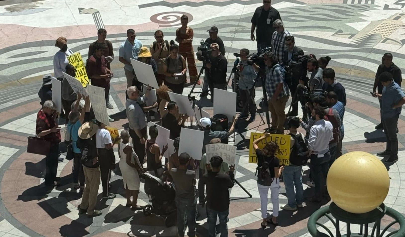 After the event, the recall group again held a performative protest, in which about a dozen participants came—in the photo below, it appears that the media crews and reporters to the right outnumber the protesters. While several media companies have described these events as "escalating" calls for resignation, the group has remained contained to about a dozen people who are involved in an intersecting network of small landlord advocacy groups connected to both the Price and Thao recalls.