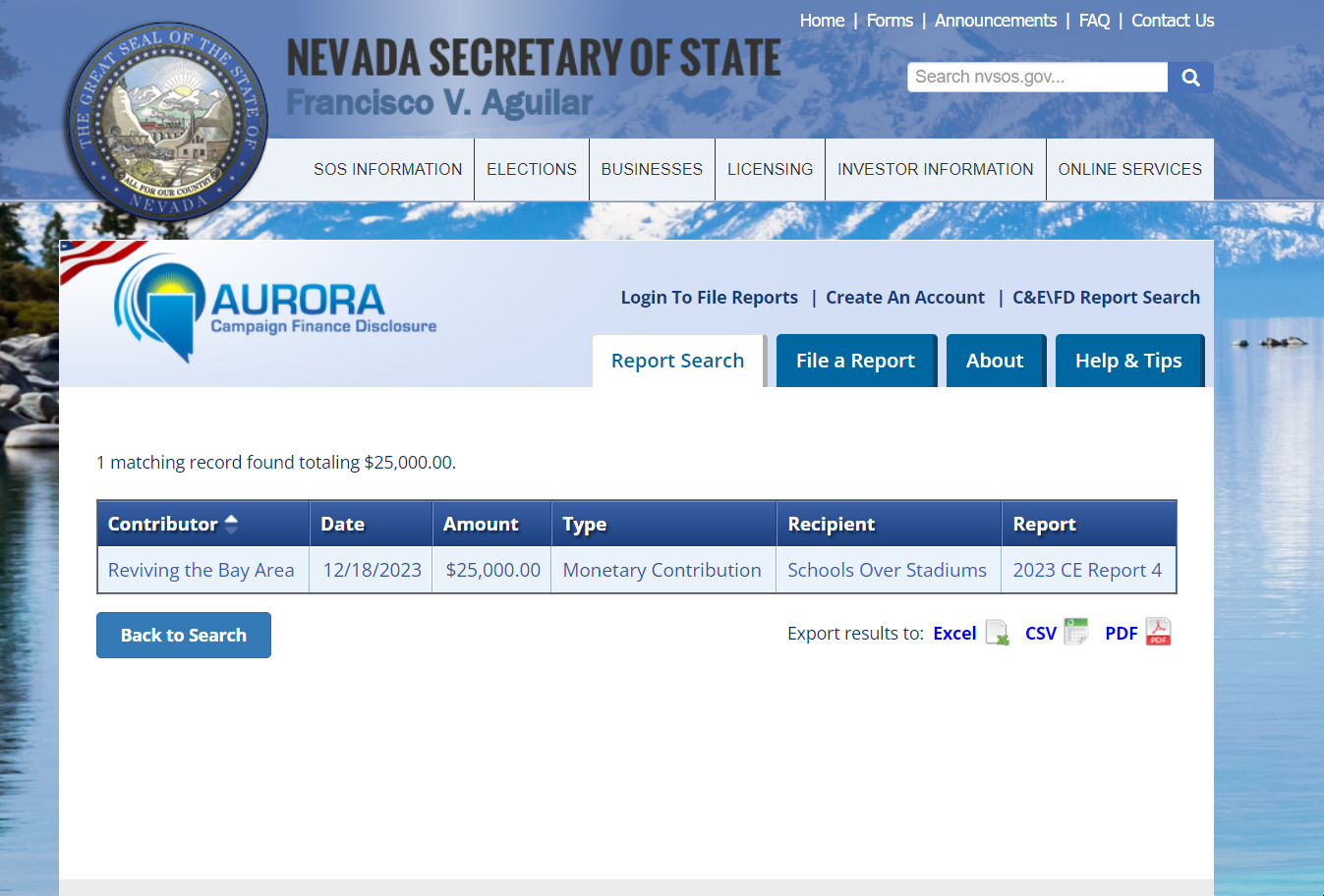 RBA/Supporters reporting released this month bolsters the allegations. Not only was the recall a singular focus through the cut-off date for reporting at the end of September, the recall was the only focus for the committee for at least the first three months of its existence. RBA/Supporters' reports and Nevada campaign finance records show that RBA/Supporters contributed $25K for the nascent Las Vegas anti-ballpark ballot measure just two weeks before the semi-annual reporting period ended on December 18. By that date, RBA had spent over $600K on SAFE, according to RBA/Supporters 497 reports released during the period.