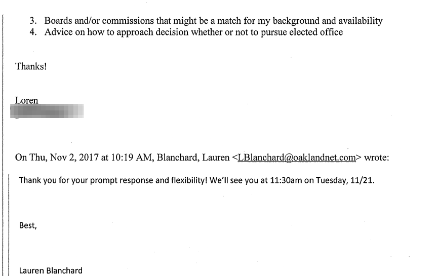Schaaf was the driving force behind reshaping the two pre-existing committees as well. Schaaf retrofitted the Oakland Fund, which perennially assisted various campaigns. Schaaf also recast East Bay Housing Action, which began its existence as local YIMBY-driven East Bay for Everyone, but morphed into an IE dedicated to the election of Derreck Johnson over Rebecca Kaplan under Schaaf’s guidance. Neither of the committees listed Schaaf as a principal in their paperwork but neither would have been involved in those campaign financing goals had it not been for direction from Schaaf.
