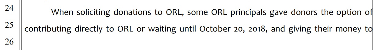 strategy, and determining its messaging. She also initially reached out to professional campaign consultants about starting an independent expenditure campaign, asked Doug Linney to produce a written campaign plan, and continued to have significant participation in ORL even after the campaign was underway. She was a regular attendee at ORL meetings, which were meant to discuss ORL strategy. Mayor Schaaf also made suggestions as to who should be the “public face” of ORL, and remained in personal, one-on-one contact with Linney throughout the campaign.”