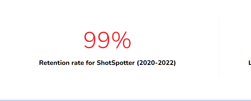 Shotspotter’s website shows a claim of 99% retention, but that’s only between 2020 and 2022 for reasons not made clear.