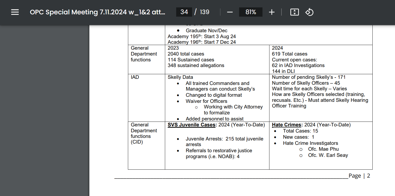 For its part, the OPD refuses to acknowledge the idea of a “false positive”, what Hofer also refers to as a ‘wild goose chase’. At the meeting Valle responded to Council members curtly, “I don’t know what a false positive is.” In a report added to the packet for full Council review, OPD makes a more formal argument on so-called phantom alerts: