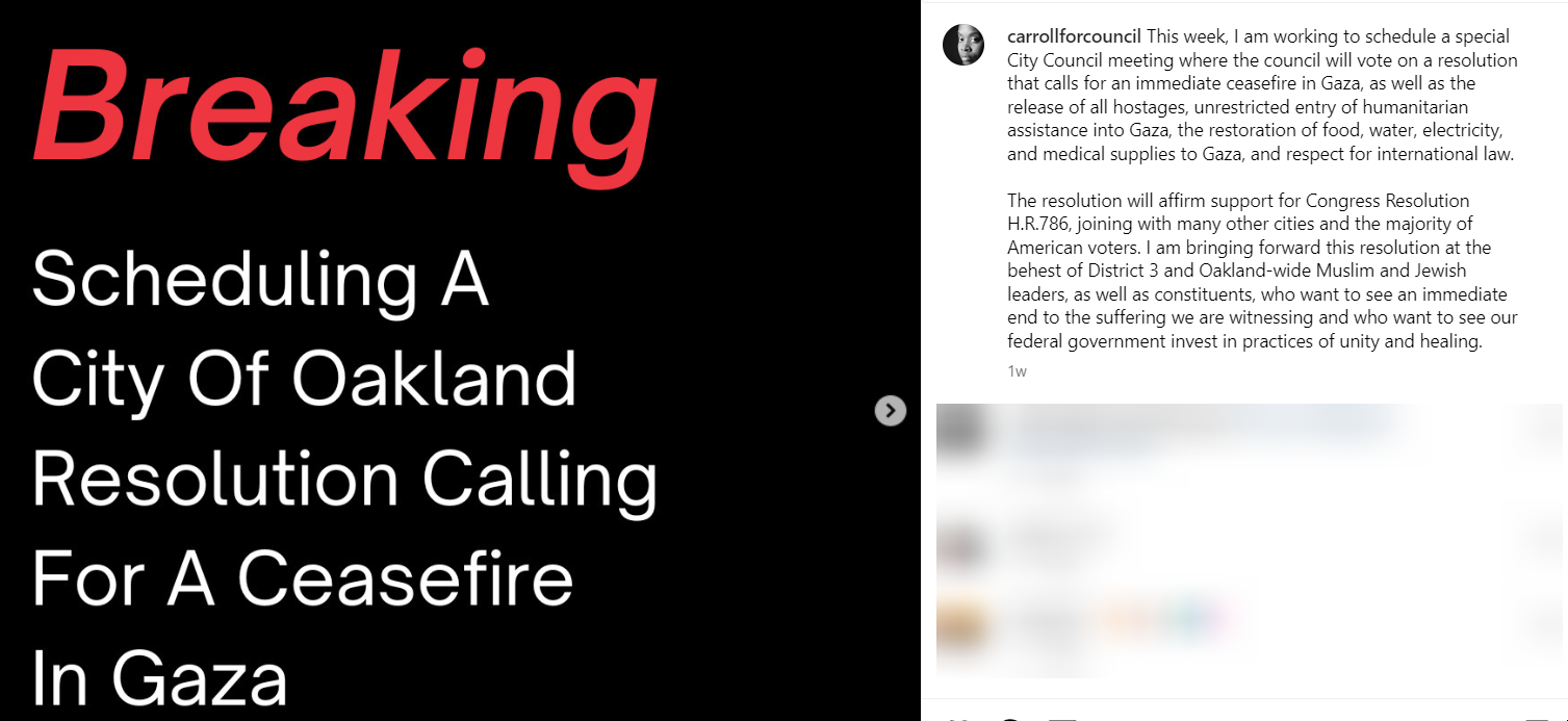 In the following weeks, Council Member Carroll Fife announced on social media that she was seeking a special meeting to put a ceasefire-advocacy resolution before Council.